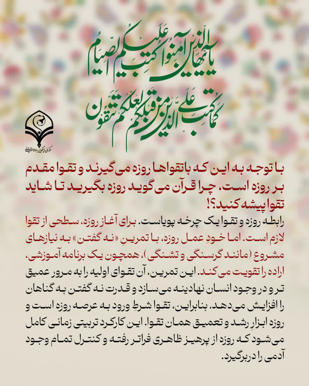 تقوا مقدم بر روزه
