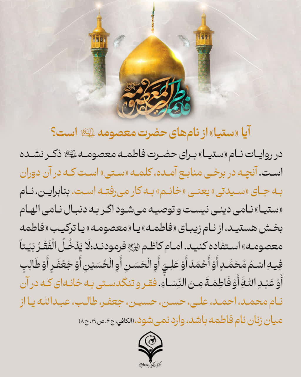 آیا «ستیا» از نامهای حضرت معصومه سلاماللهعلیها است؟