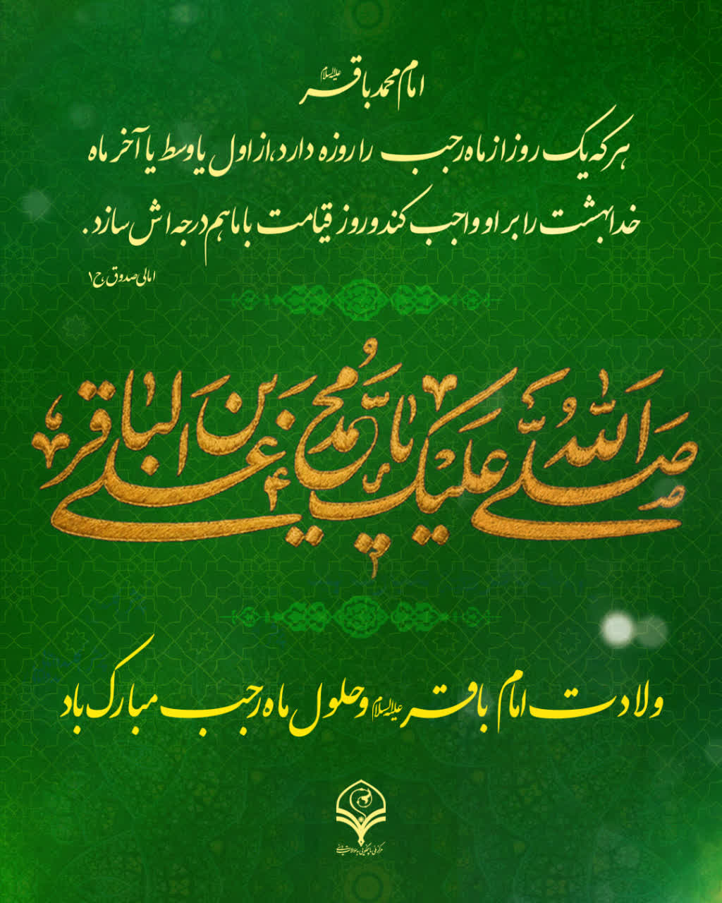 ولادت امام محمد باقر علیهالسلام و حلول ماه پر خیر و برکت رجب، مبارک باد.