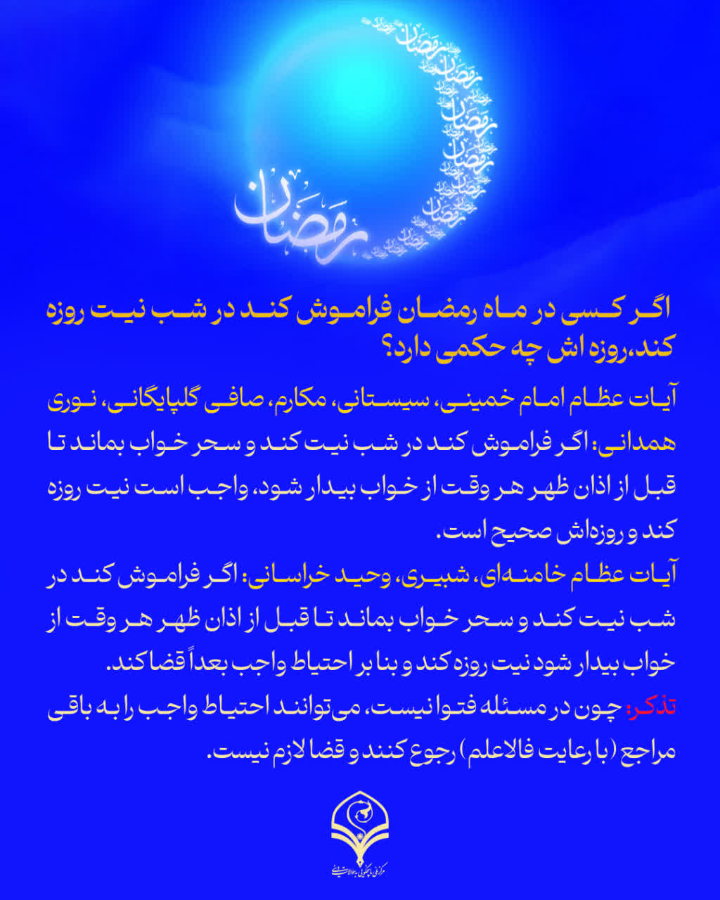 اگر کسی در ماه رمضان فراموش کند در شب نیت روزه کند،روزه اش چه حکمی دارد؟
