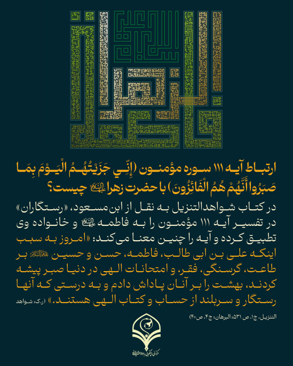 ارتباط آیه 111 سوره مؤمنون با حضرت زهراسلاماللهعلیها چیست؟