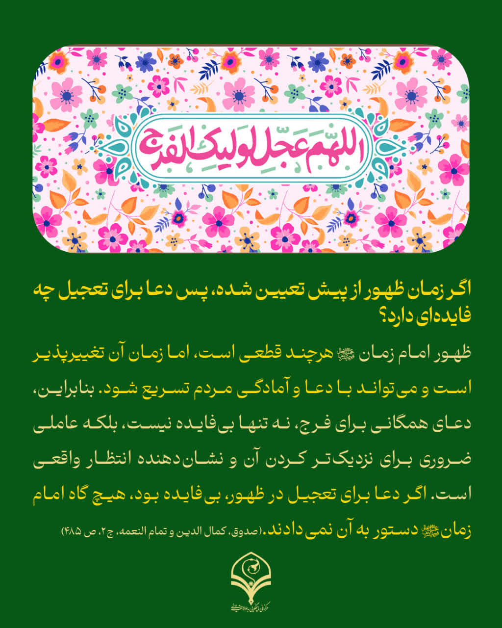 اگر زمان ظهور از پیش تعیین شده، پس دعا برای تعجیل چه فایدهای دارد؟