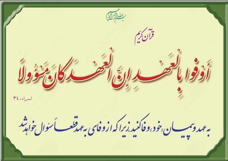 4. «لا دِینَ لِمَن لا عَهدَ لَهُ» (محمد بن محمد شعیری؛ جامع الأخبار؛ ص ۷۴).